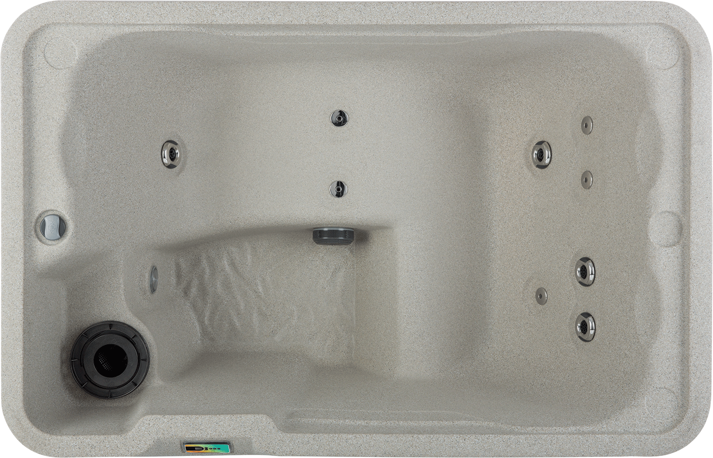 Turn any space into a private oasis with this small yet spacious hot tub. Couples or singles can melt away tension in the roomy Fantasy Spas Aspire two-way lounger. This hot tub is perfect for balconies and fits through any standard doorway. The removable accessory tray acts as a table allowing you to bring a stereo or games into the hot tub as the jets massage your muscles. Simply fill it with a nearby hose, plug it into any standard 110v outlet, and enjoy!