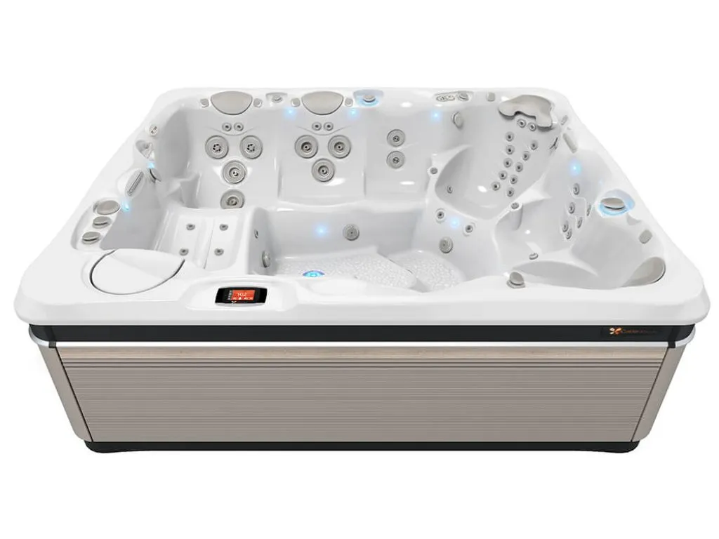 Enjoy personalized relaxation in our Cantabria hot tub, seating 8 with an UltraMassage® lounge, UltraMasseuse® System, 6 jet patterns, and 3 speeds.