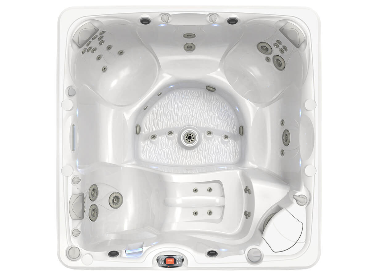 Perfect for daily relaxation, family gatherings, or entertaining, the Makena® offers a lounge, 46 jets, 12 points-of-light, an Acquarella® waterfall, and seats 6.