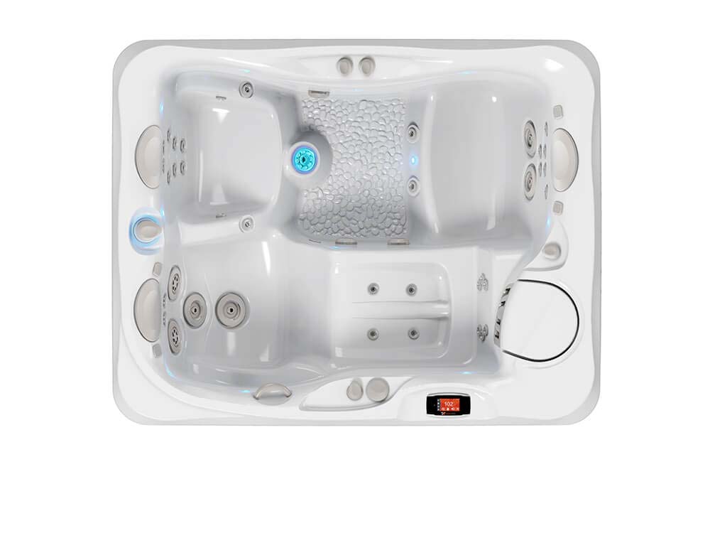 Compact yet spacious, the Ravello fits 3 and is perfect for tight spaces. It offers an ultimate soak with two ReliaFlo pumps, 39 jets, and an UltraMassage® lounge.